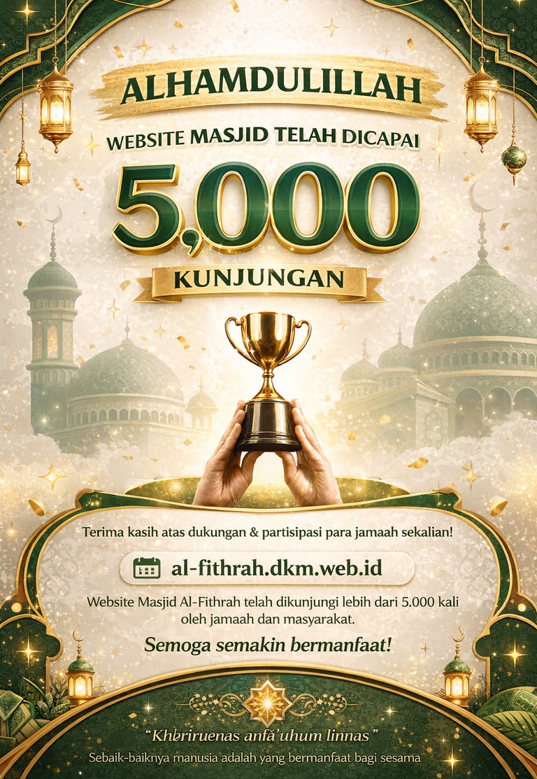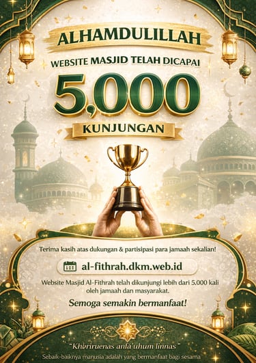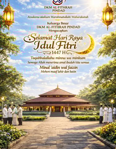 Selamat datang di situs web resmi Dewan Kemakmuran Masjid (DKM) Al-Fithrah. Dengan segala puji bagi Allah SWT, kami bersyukur dapat mempersembahkan portal ini sebagai media informasi dan komunikasi yang dapat diakses oleh seluruh jamaah dan masyarakat luas.