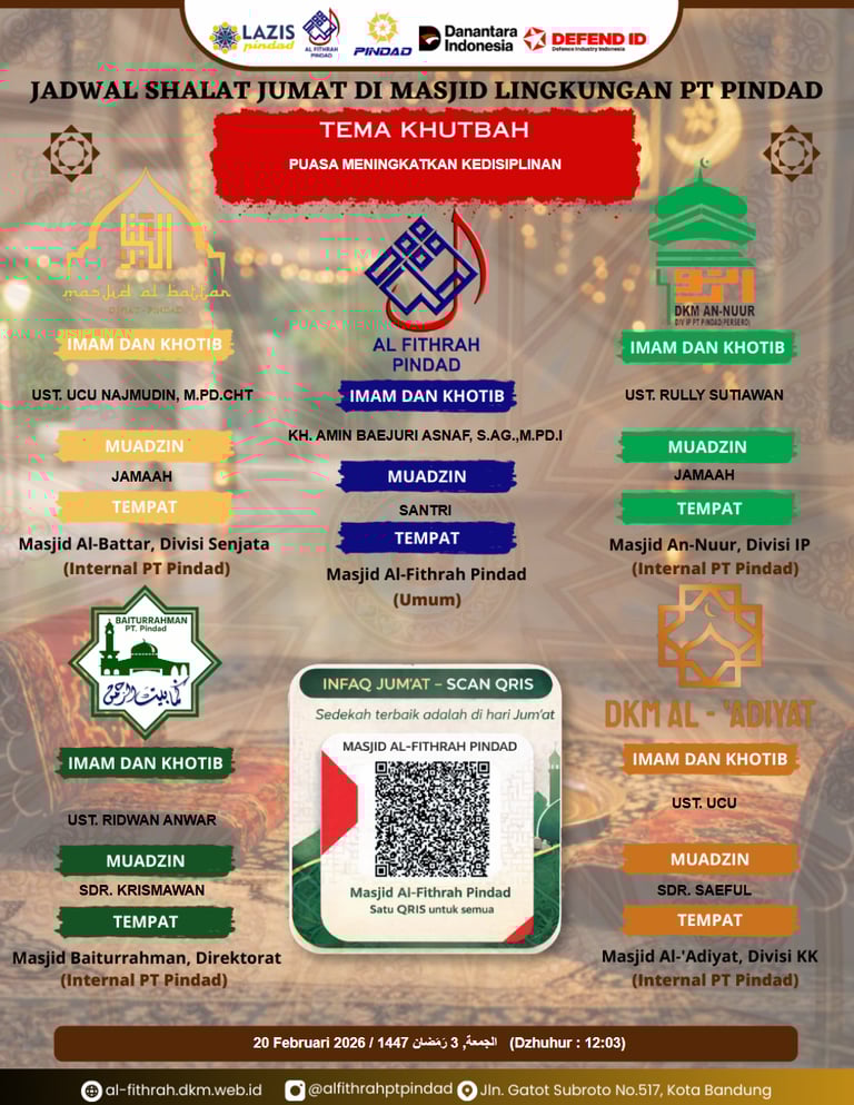🕌 Jadwal Sholat Jumat di Lingkungan PT Pindad
