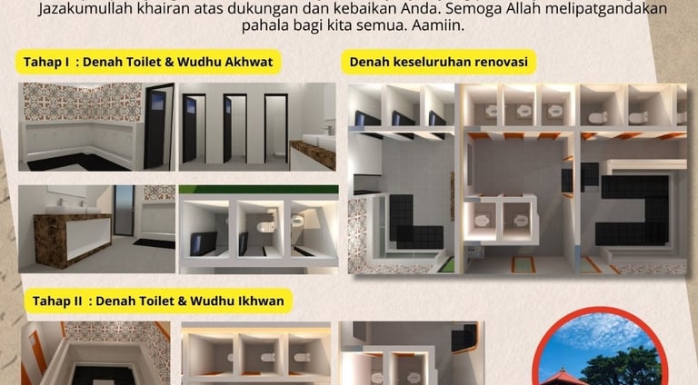 Segala puji bagi Allah, renovasi toilet dan tempat wudhu akhwat ( tahap - 1) telah selesai. Kami mengucapkan jazakumullahu khairan kepada seluruh jamaah dan donatur yang telah berkontribusi dalam proses ini, baik melalui doa, tenaga, maupun infak/waqaf.